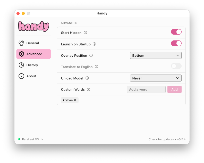 Je suis dégoûté parce que je viens de payer un abonnement pour un logiciel qui fait exactement ça, sauf que bah là, Handy , c’est gratuit. L’idée derrière ce logiciel, c’est un outil de speech to text qui fonctionne uniquement en local. Pas d’abonnement, tout est gratuit, et pas de cloud… il faut juste configurer un raccourci clavier. Et ensuite vous parlez et le texte apparaît comme par magie.