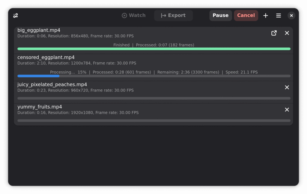 Y’a une interface CLI pour les puristes, une GUI pour les autres puis vous chargez votre vidéo, vous choisissez vos modèles de détection et restauration, vous lancez, et ça traite. Vous pouvez regarder ensuite le résultat (en temps réel si votre GPU suit).